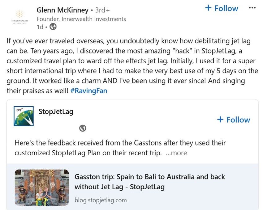 LinkedIn StopJetLag share from Glenn McKinney